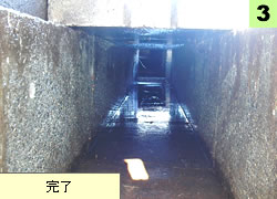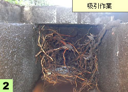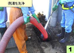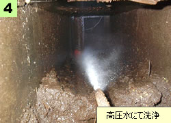 土砂等と洗浄水を吸引し清掃(悪臭防止)